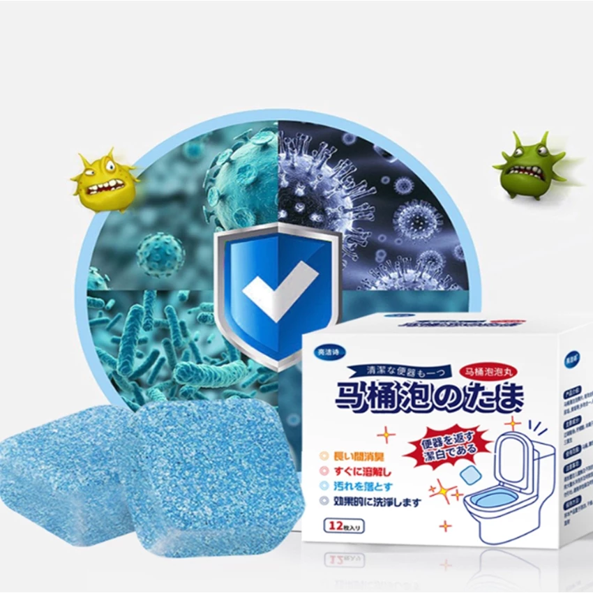 เม็ดฟู่ทำความสะอาด ล้างชักโครก ห้องน้ำ เม็ดฆ่าเชื้อ ขจัดคราบ 12 ชิ้น